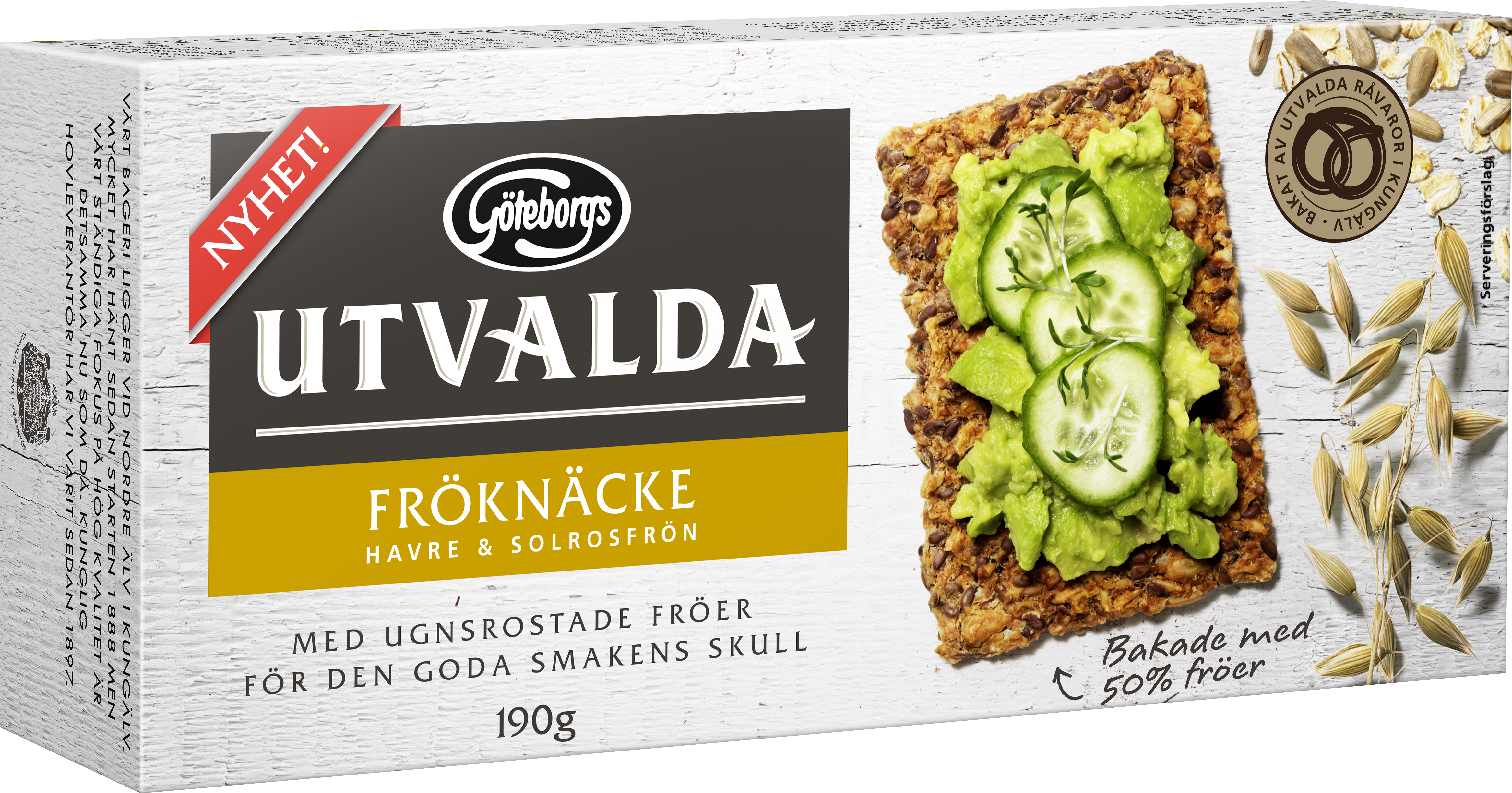 -Vi har tagit allt det goda och mättande från fullkornet och kombinerat med hälsosamma, ugnsrostade fröer för den goda smakens skull. Allt bakat med få ingredienser och lågt sockerinnehåll. Utvalda Fröknäcke bakas i liten skala och är gräddat på plåtar i vårt bageri i Kungälv utanför Göteborg. Precis som du skulle göra hemma, säger Martin Gustafsson, produktutvecklare för Göteborgs Utvalda.