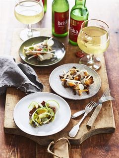 För att inspirera hemmakockar inför höstens fester har Årets Kock, i samarbete med Spendrups, exklusivt tagit fram recept på svenska smårätter med Briska äppelcider som utgångspunkt. Smakerna från matjessill, sotad lax, och kantareller tillsammans med den ofiltrerade äppelcidern är en perfect match.