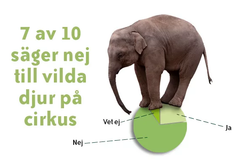 Vilda djur hör inte hemma på cirkus enligt svenska folket. På frågan ”Tycker du att det ska vara tillåtet att hålla vilda djur som exempelvis elefanter och sjölejon på cirkus?” svarade 68 procent, av svenskarna nej, 23 procent svarade ja och 9 procent var osäkra. Motståndet mot vilda djur på cirkus var starkt i alla åldersgrupper.