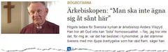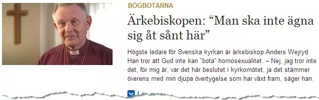 Ärkebiskop Anders intervjuas i kvällens Uppdrag granskning om Svenska kyrkans syn på homosexuell samlevnad.