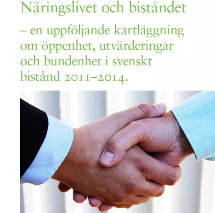 Rapporten ”Näringslivet och biståndet - en uppföljande kartläggning om öppenhet, utvärderingar och bundenhet i svenskt bistånd 2011-2014” listar 29 projekt som Sida, Swedfund, Exportrådet respektive Tillväxtverket ansvarar för. Den fokuserar på regeringens styrning av biståndet inom detta område och är en uppföljning av en tidigare studie, publicerad i december 2011 och även den författad av journalisten Nils Resare.