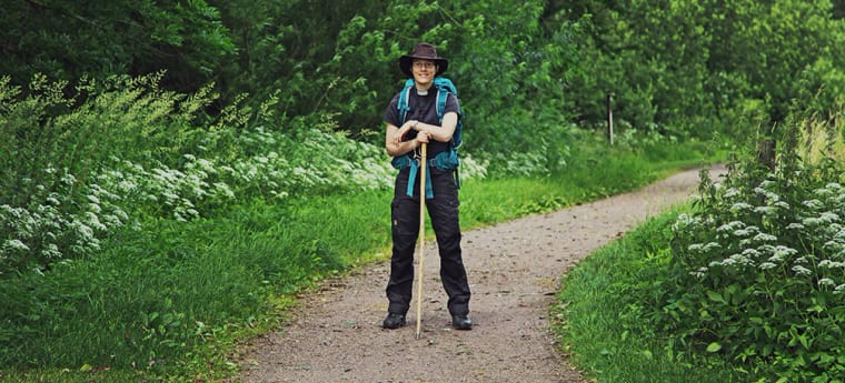 Emma Thorén är pilgrimspräst och vandringsledare för den två månader långa klimatvandringen mellan Uppsala och Lund, med sikte på klimattoppmötet i Paris i december. Foto: Emanuel Eriksson.