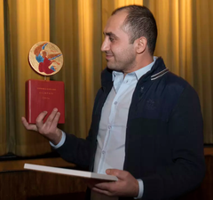 Hogir Hirori med Angelos – Svenska kyrkans filmpris. Foto: Mikael Ringlander