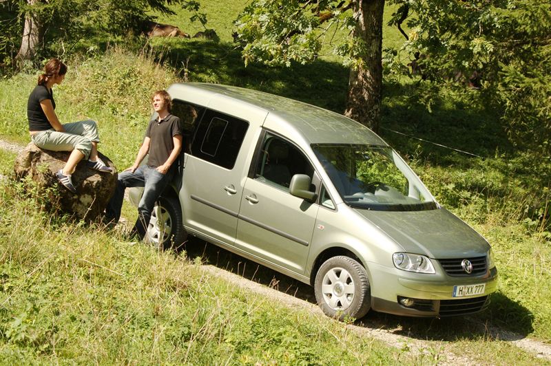 däck i dimensionen 195/65 R15, färddator och en skjutdörr på höger sida (och även till vänster i versionen Life). Caddy
