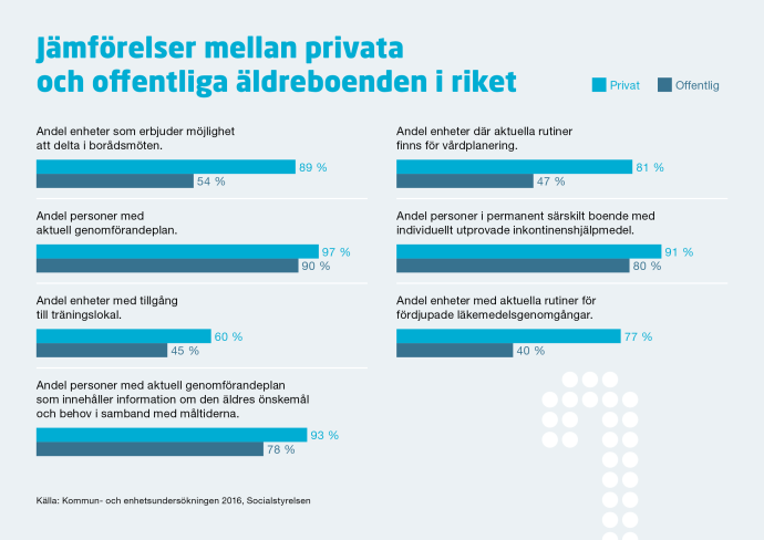 Socialstyrelsen har presenterat Enhetsundersökningen där 5 000 särskilda boenden har svarat på frågor om kvalitet. De privata utförarna kommer bättre ut jämfört med kommunala utförare.