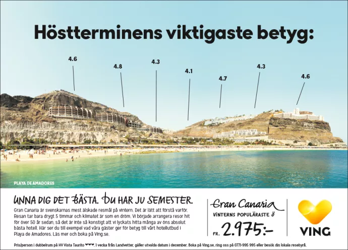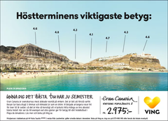 Lagom till helgen lägger Ving in ytterligare en växel med annonsering i såväl dagstidningar (SvD, DI, GP, DN och Sydsvenskan) som lokal media samt banners. Bilagor och native-annonsering kommer också att vara en viktig del under kampanjperioden.