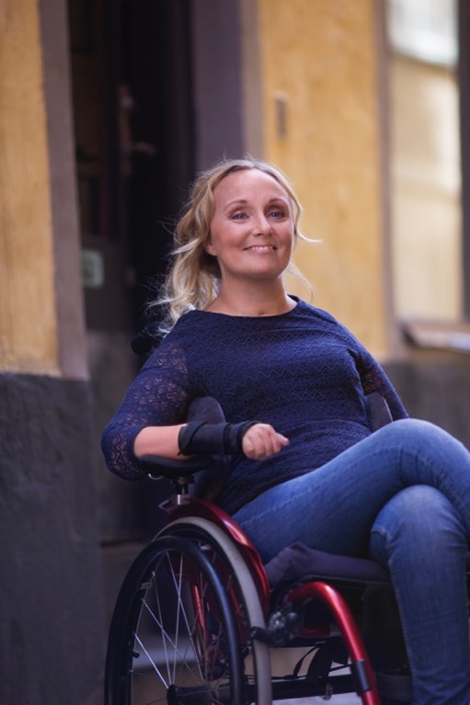 ”Att sitta i rullstol är verkligen inte vidare dramatiskt. Livet är ju så mycket mer än avfasade trottoarkanter”, säger författaren. ”Det som är viktigt är däremot att räknas som människa.”