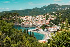 Fridfull, grön och vacker och det sägs finnas inte mindre än närmare 300 kyrkor på ön! Bland andra lilla Agios Ioannis där Meryl Streep äktade Pierce Brosnan, i Mamma Mia-filmen. Det är en perfekt ö att utforska på egen hand, och här hittar du lätt din egen badvik. Platsen passar också för dig som önskar en fridfull semester med möjlighet till att besöka närliggande öar som Alonissos och Skiathos.