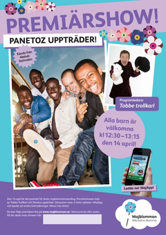 Majblommans insamling startar även i år med en färgsprakande premiärshow! 14 april kl 12.30 är det dags för årets roligaste direktsändning, ledd av barnens bästis Tobbe Trollkarl. Han får sällskap av melloaktuella Panetoz, som sjunger sina bästa låtar och skapar rejäl partystämning.