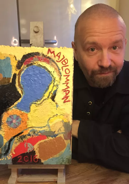 2016 har Majblomman den stora glädjen att presentera bildkonstnären tillika prästen Kent Wisti, som även är känd för sina digitala, inte sällan virala, satirteckningar. För Majblommans räkning har Kent Wisti skapat en lätt guldskimrande oljemålning inspirerad av klassiskt ikonmåleri, med ett färgstarkt och lekfullt motiv.