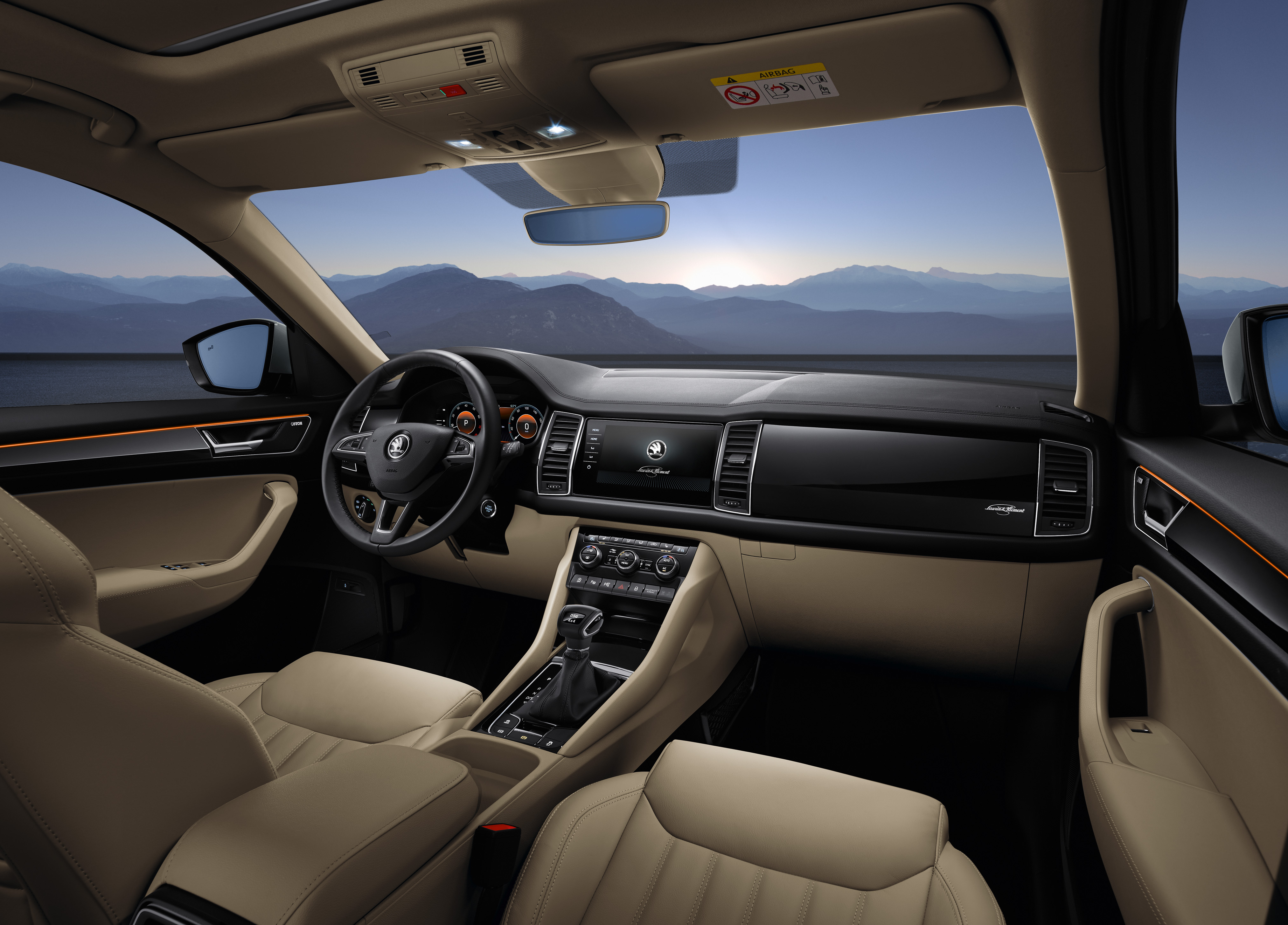 Interiört är KODIAQ L&K standardutrustad med uppvärmd ratt och läderklädsel. Instrumentpanelen pryds av panel i svart pianolack och i standardutrustningen ingår även eljusterbara stolar till både förare och passagerare, trezons klimatanläggning, Canton ljudsystem och infotainmentsystem med 8,0-tumsskärm.