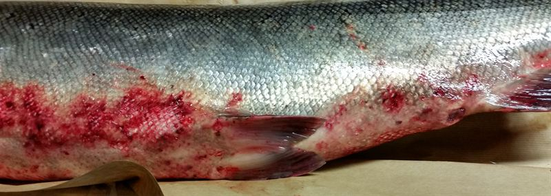 Ett antal virus- och bakteriesjukdomar kan orsaka blödningar och sår. Flera olika sådana bakterier påvisades hos ett fåtal individer och genteknik gav indikationer på två typer av virus, herpes- respektive iridovirus, på nio av nio undersökta fiskar.