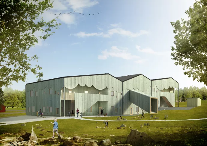 Den nya förskolan byggs i två plan med halvplansförskjutning vilket ger upphov till ett spännande formspråk som passar in i den naturliga terrängbilden. Byggnaden är utformad för att möta förskolans behov och funktioner men i planeringsarbetet har det också varit angeläget hitta en utformning som med enkla medel kan anpassas för annan verksamhet utifrån framtida behov.