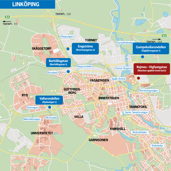 Biogaskunderna hänvisas istället till någon av de andra fyra mackarna i Linköping (se karta). Gumpekulla som har störst kapacitet med fyra pumpar är den mack som ligger närmast Rejmes, cirka 600 meter i riktning norrut mot Ekängen.