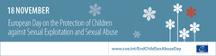 Idag den 18 november arrangerar Europarådet en dag mot sexuell exploatering av barn: European Day on the Protection of Children against Sexual Exploitation and Sexual Abuse. Rådet vill öka allmänhetens kunskap om sexuell exploatering av barn och om behovet av att arbeta förebyggande samt sätta tryck på ratificering och implementering av Lanzarote-konventionen, Europarådets konvention mot sexuella övergrepp och sexuell exploatering av barn.