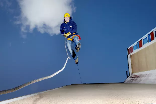 Att gå vertikalt nerför en lodrät vägg kräver både tillit och mod. På söndag kan gudstjänstbesökare och andra som kommer till Mikaelikyrkan utmana sig själva att gå nedför kyrkans vägg. Västerås egen vertical run-expert Tony Berglund är med och riggar för en hisnande upplevelse.