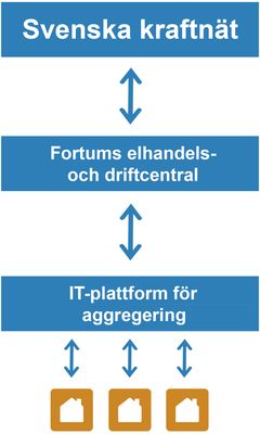 Fortum har samlat de omkring 100 hushållens förbrukning och ”budat in” 0,1 MW på Svenska kraftnäts marknad för frekvensstyrd normaldriftsreserv (FCR-N) en eller ett par timmar per dygn. Ganska lite på en marknad som omfattar omkring 600 MW i Norden kan tyckas, men pilotprojektet visar på potentialen med en ny typ av reglerresurs. Bland annat har det varit betydelsefullt att undersöka om flexibiliteten har kunnat levereras tillräckligt snabbt.
