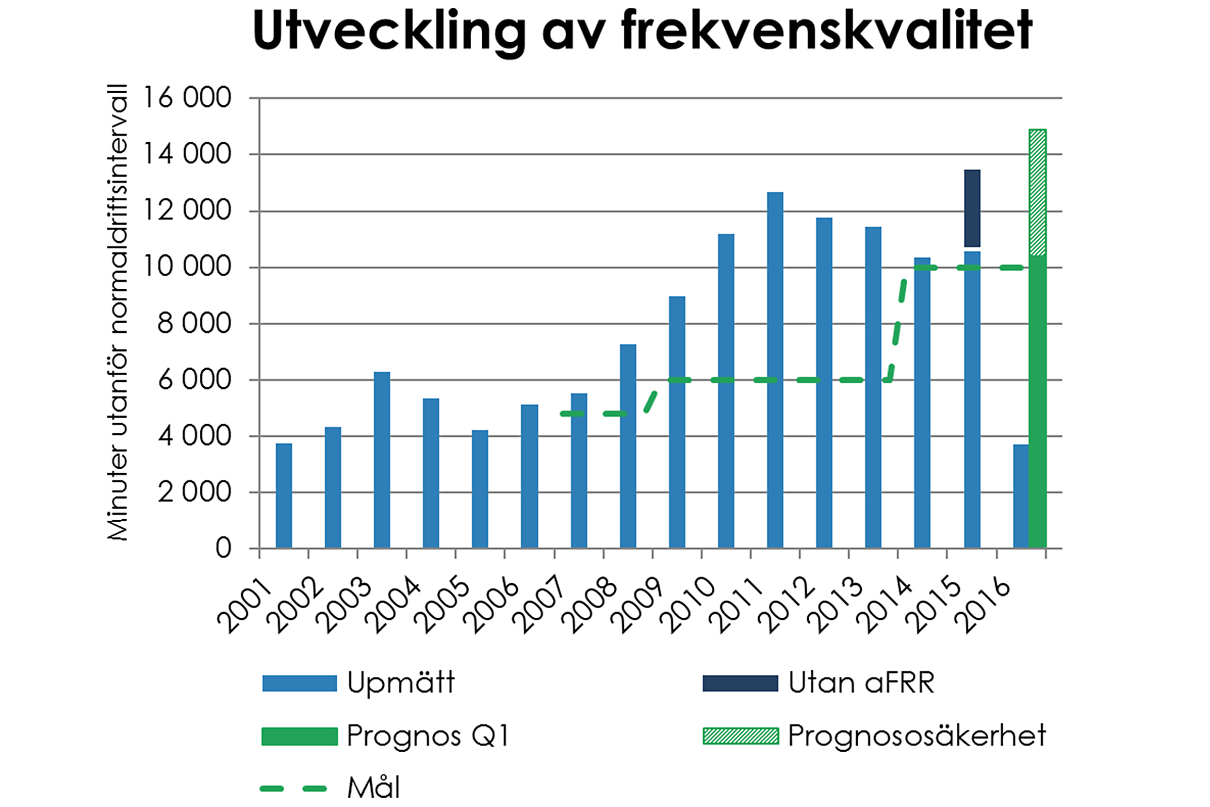 Första kvartalet 2016 innebar den sämsta kvaliteten på frekvensen i det nordiska synkrona elsystemet någonsin. De senaste 20 åren har kvaliteten, mätt i minuter som den avvikit från normaldriftsintervallet, blivit mycket sämre. Antalet minuter med avvikelser under året har tiofaldigats mellan 1996 och 2010. Med större sammanlänkning med omvärlden blir systemet mer känsligt när flöden radikalt kan ändras från timme till timme.