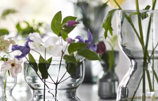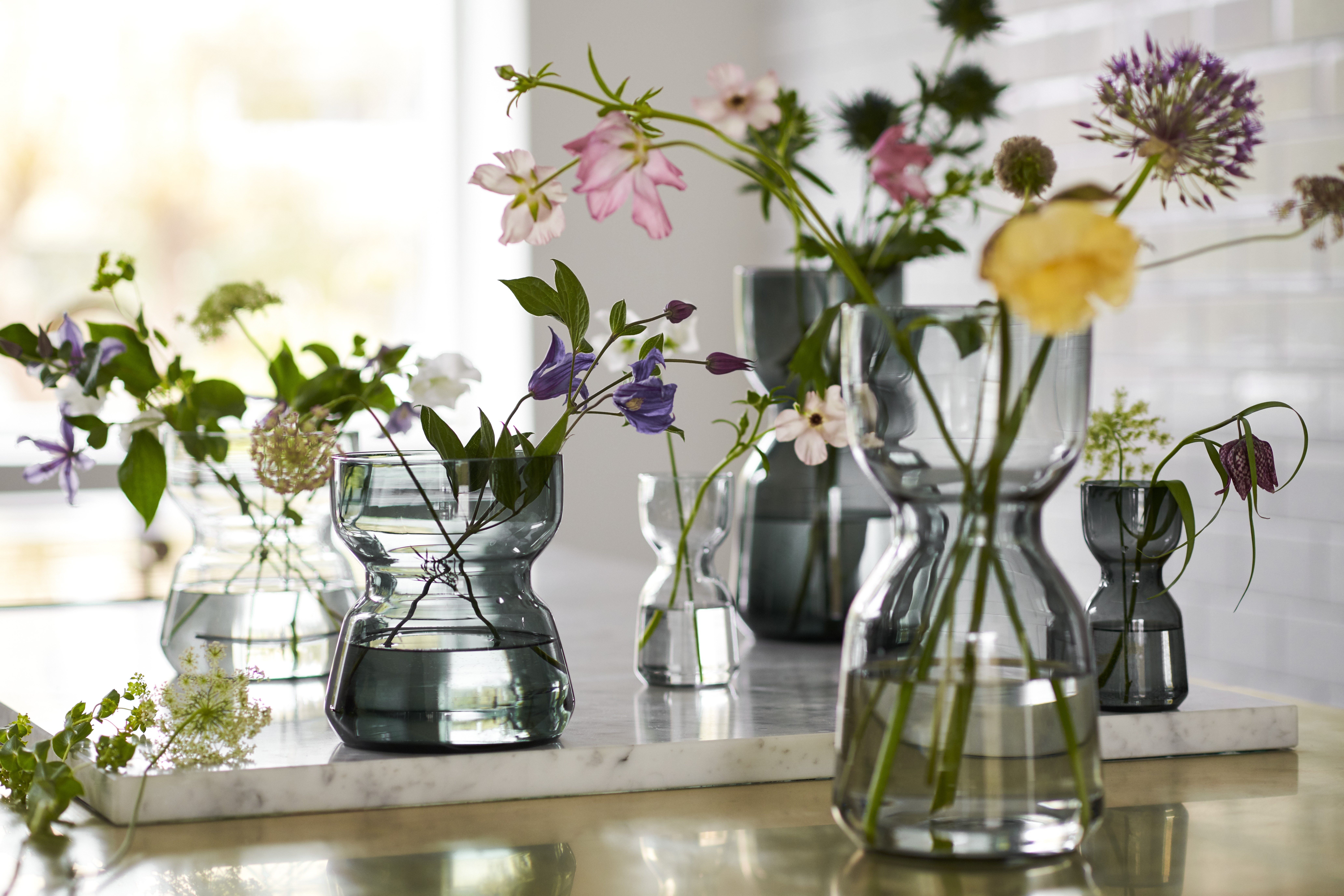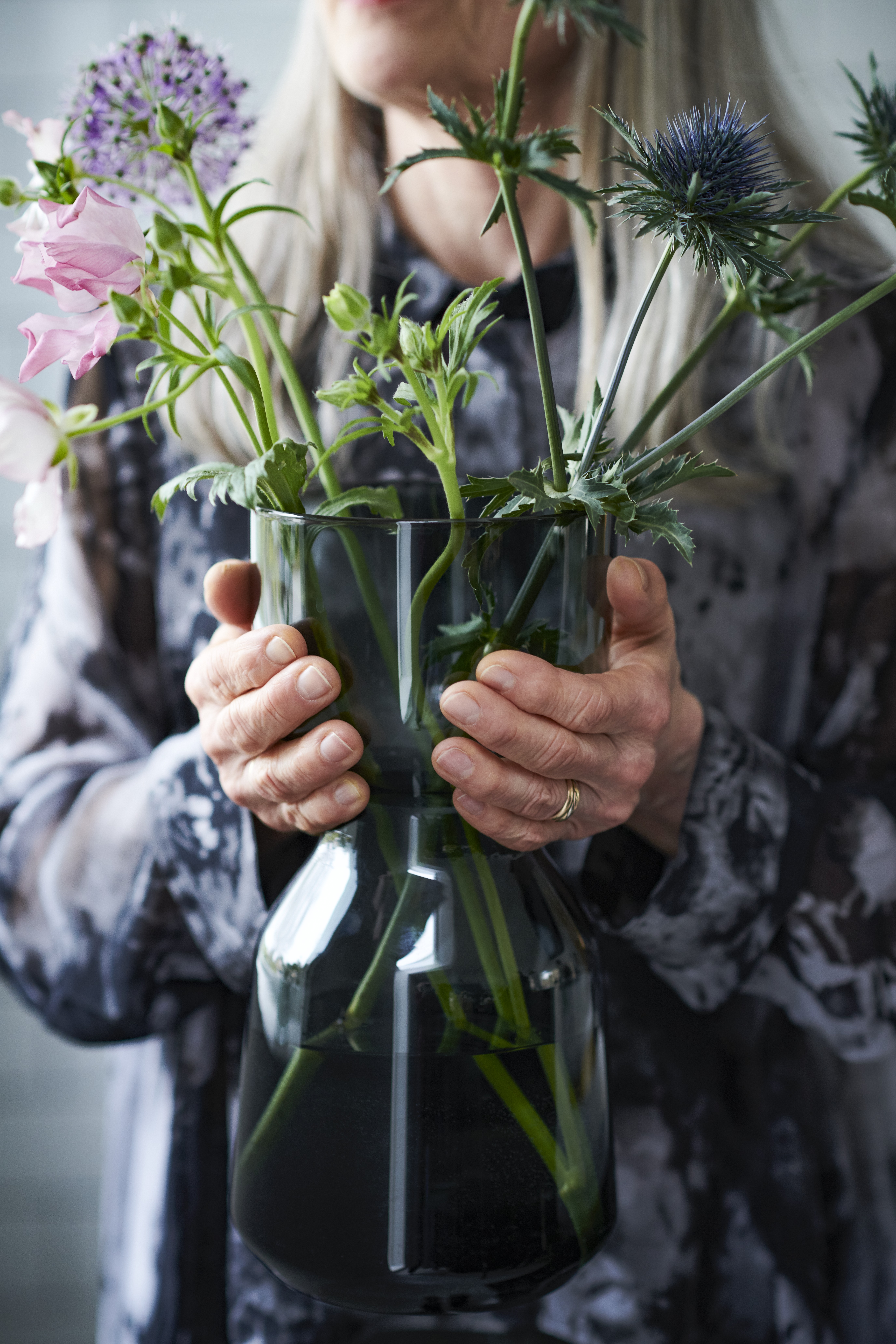 ”Vår utgångspunkt var att skapa vaser som får blommorna att trivas. Därför bestämde vi oss för former som ger bladverk och stjälkar det utrymme och stöd de behöver. Vaserna OMTÄNKSAM är även enkla att lyfta, bära och diska. Du kan använda dem var för sig, eller kombinera flera i matchande färger. Vi hoppas att vaserna ska få både dig och dina blommor att må bra – varje dag.”
