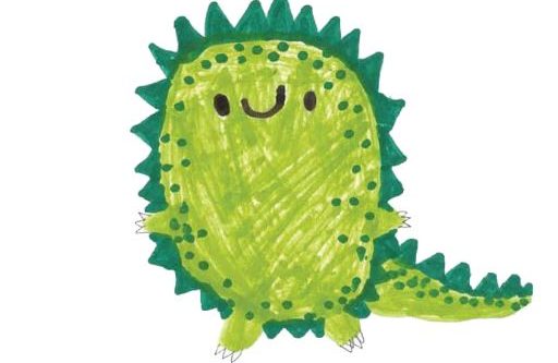 Taggigt grönt djur. Designat av Greta, 8 år, Sverige