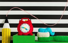 HEMMAHOS serie är bland annat vardagsföremål – penna, klocka, tandborste – som har förstorats upp till jättestora mjukleksaker som hjälper till att sätta fart på fantasin. Mattor med tryckta husmotiv skapar fantasivärldar, och hoppa hage-mattan flyttar utomhusleken inomhus.
