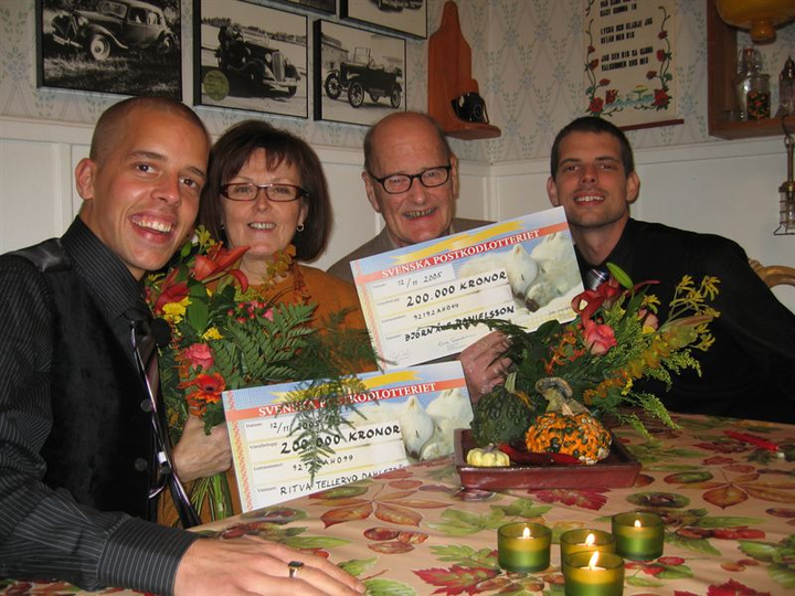 I kvällens sändning av ”PostkodMiljonären” i TV4 kan vi följa när alla utom Gunnel överraskades med en vinstcheck på 200 000 kronor. Gunnel satt akut hos tandläkaren, men fick lön för mödan lite senare. - Vet du, när vinsten gick till Vormsele för några veckor sedan bestämde jag mig för att gå med. De här pengarna vet jag precis vad jag ska ha till. En handikappvänlig bil så att jag kan ta ut min make på lite utflykter. Jag hade bestämt mig för att köpa en bättre bil tidigare, men de här pengarna kommer mycket väl till pass, berättar Gunnel några dagar senare. I Svenska PostkodLotteriet vinner man på sin bostadsadress. Varje vecka får deltagarna i en vinnande postkod (som består av en mindre del av ett postnummer) dela på en miljon kronor. Sista helgen i månaden vinner dessutom en enskild deltagare i den vinnande postkoden två miljoner kronor och en SAAB 9-5 2,0t Biopower värd cirka 260 000 kronor. Allt överskott som Svenska PostkodLotteriet genererar tillfaller Rädda Barnen, Barncancerfonden och Världsnaturfonden WWF. I programmet ”PostkodMiljonären” med Rickard Sjöberg i TV4 presenteras lottvinnarna varje lördag efter klockan 19.30. Högupplösta pressbilder på vinnarna finns för fri publicering på www.bildbanken.com Användarnamn: postkodlor Lösenord: cecilia Läs mer på www.postkodlotteriet.se