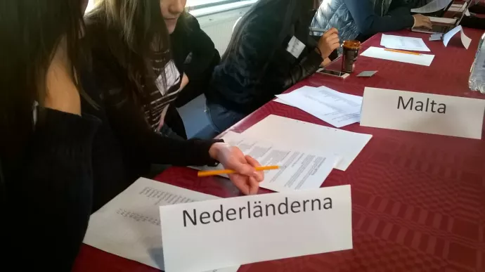 Gymnasieelever i Malmö förhandlar om flyktingfrågan i EU-rollspel