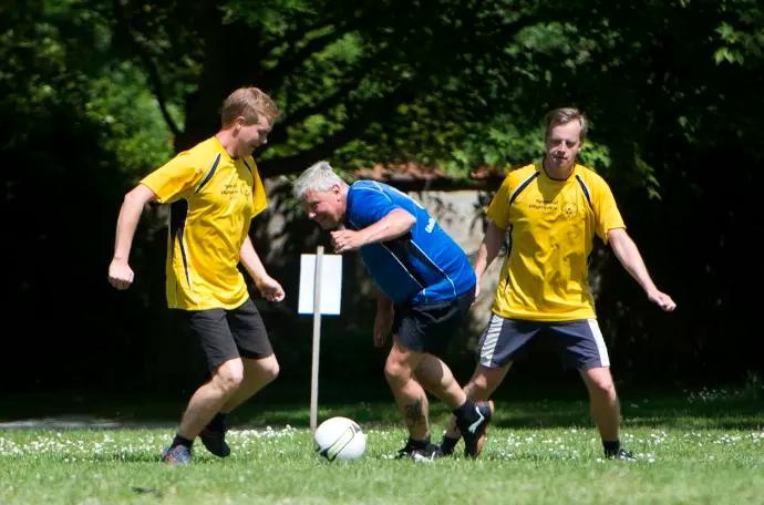 Toppolitiker spelar fotboll med ungdomar med en utvecklingstörning under Almedalen