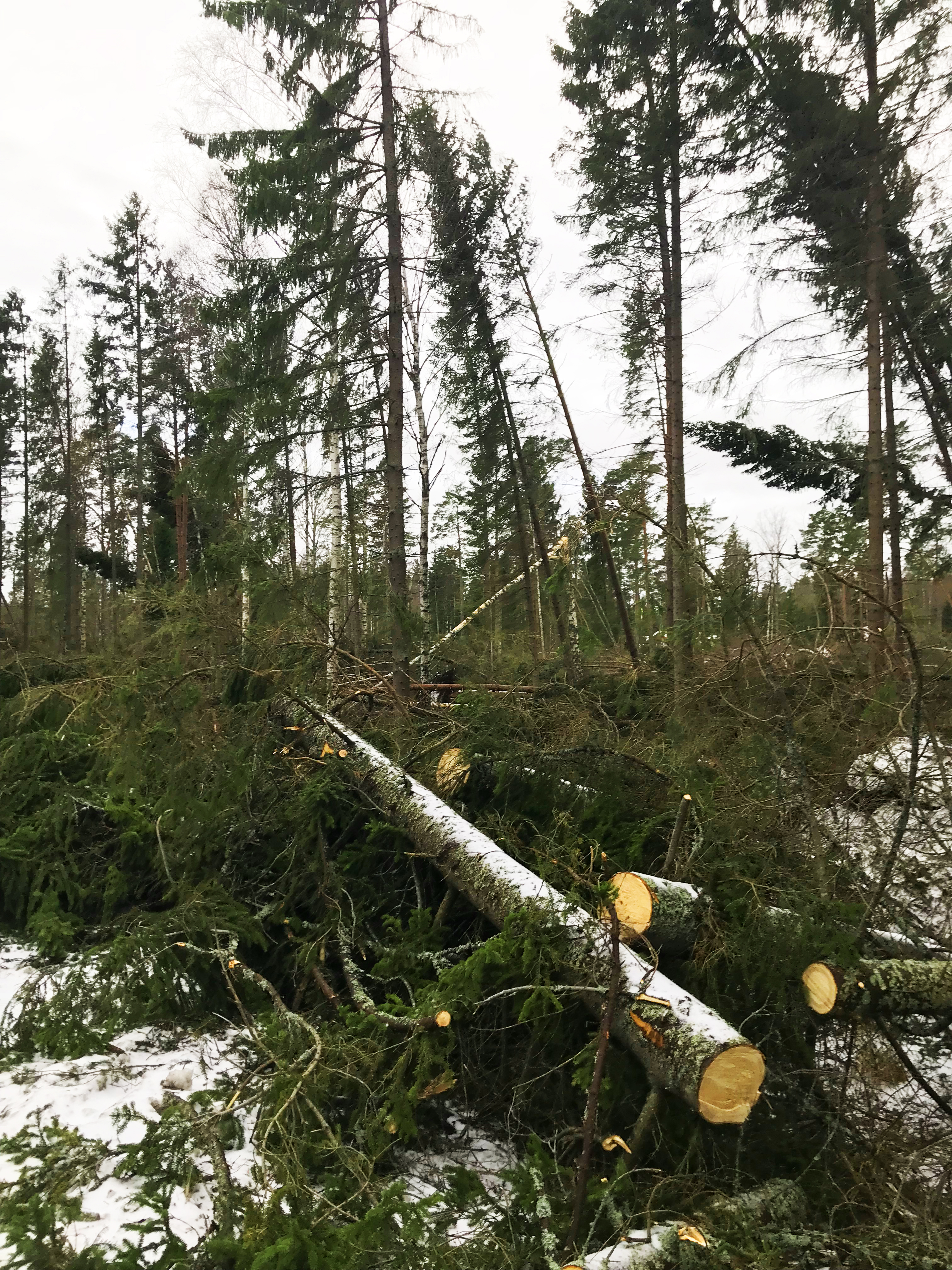 Mer om stormfälld skog här: http://www.skogsstyrelsen.se/bruka-skog/skogsskador/stormskador/