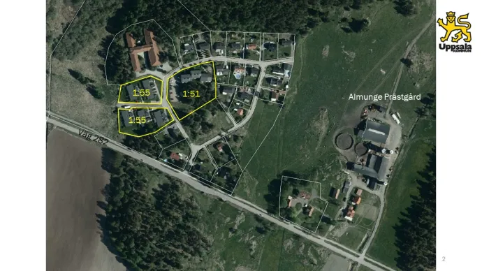 Almunge prästgård har god tillgång till kommunal service och kollektivtrafik och har anslutning till gång- och cykelbanan längs väg 282.