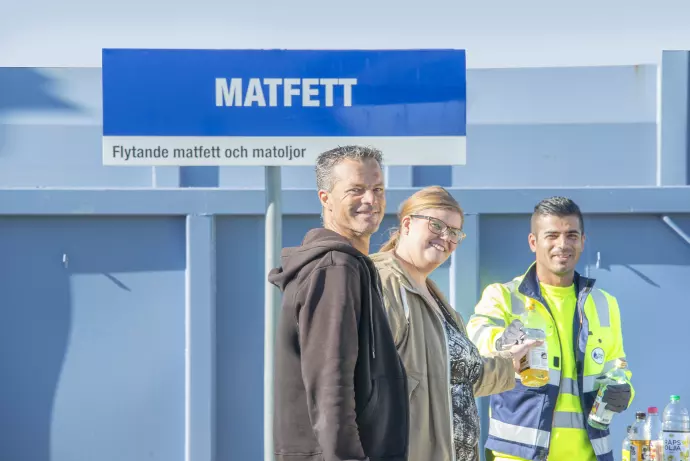 – Häll matfettet eller oljan i valfri, ren flaska och skruva åt korken ordentligt. Lämna in den på någon av våra återvinningscentraler. Sedan tar vi hand om resten!