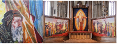 Henrik Sörensen målade Domkyrkansfärgglada altartavla för över 80 år sedan. Många undrar varför han målade Jesus blond och blåögd när de flesta vet att Jesus växte upp i ett land där man har mörka ögon och mörkt hår… Henrik målade sin bild av Jesus som sin bästa kompis, en vän som sträcker ut sina armar till en kram!