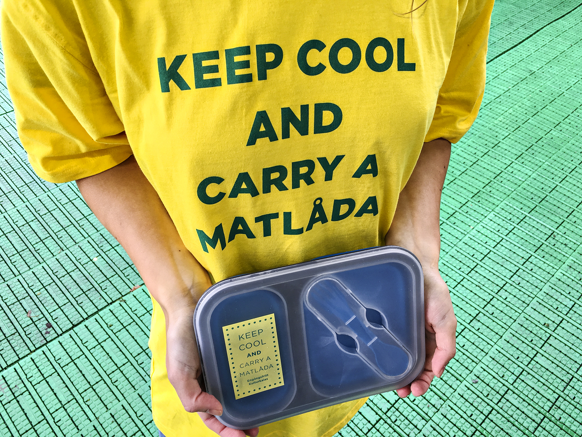 – Det är bra för de som glömt egen matlåda, säger Karin Nielsen. Det går även att behålla lådan och använda den efter festivalen till exempel när du handlar hämtlunch. De flesta restauranger tar idag emot matlådor.