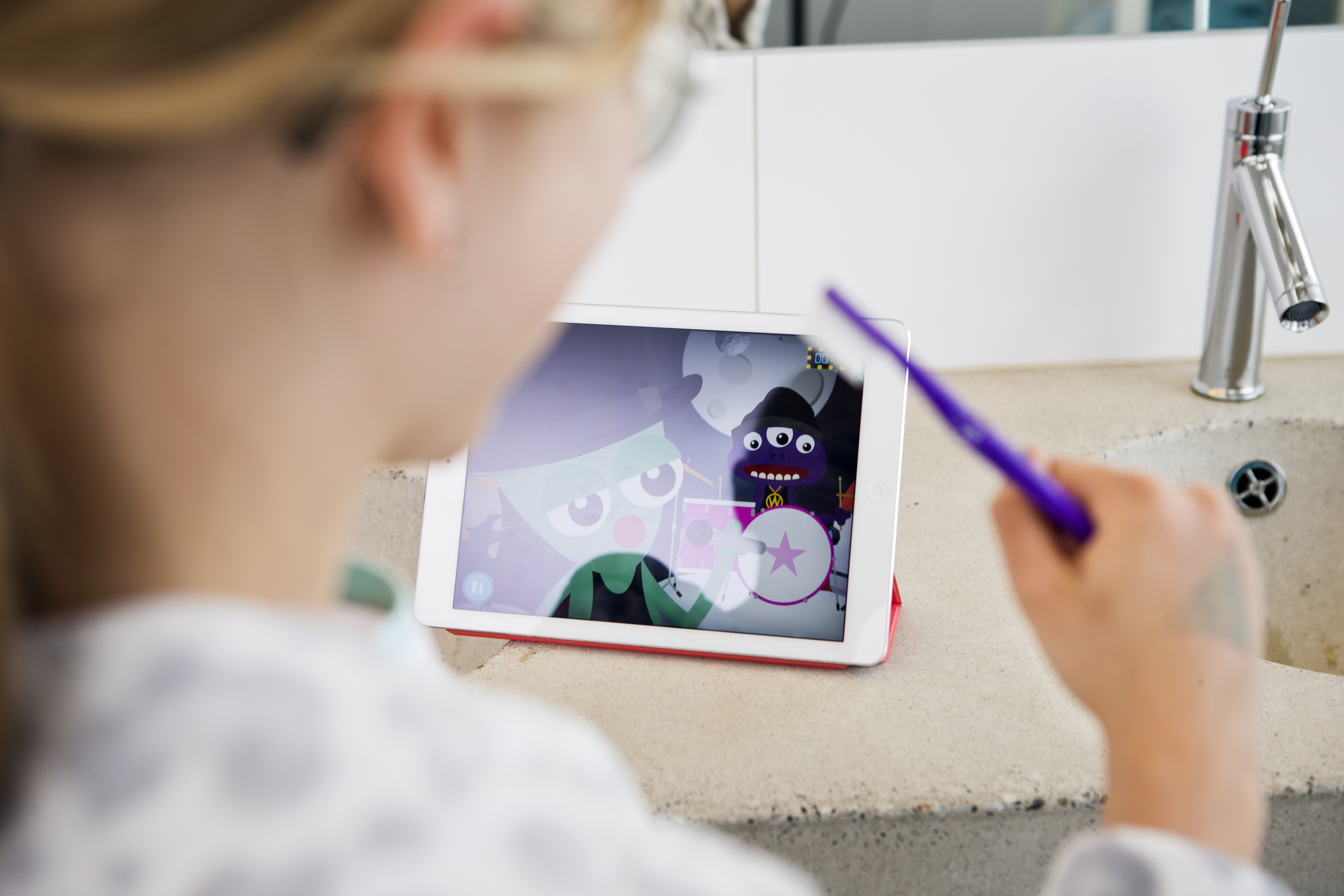I Rocka munnen appen kopplas tandborstning och skärmtid ihop till ett roligt spel, så att familjen kan leka fram en bra vana tillsammans hemma. Målet är att tandborstningsrutinen ska mötas med ett uppspelt ”jag vill!” från barnen istället för ett tjatigt ”du måste” från föräldrarna.