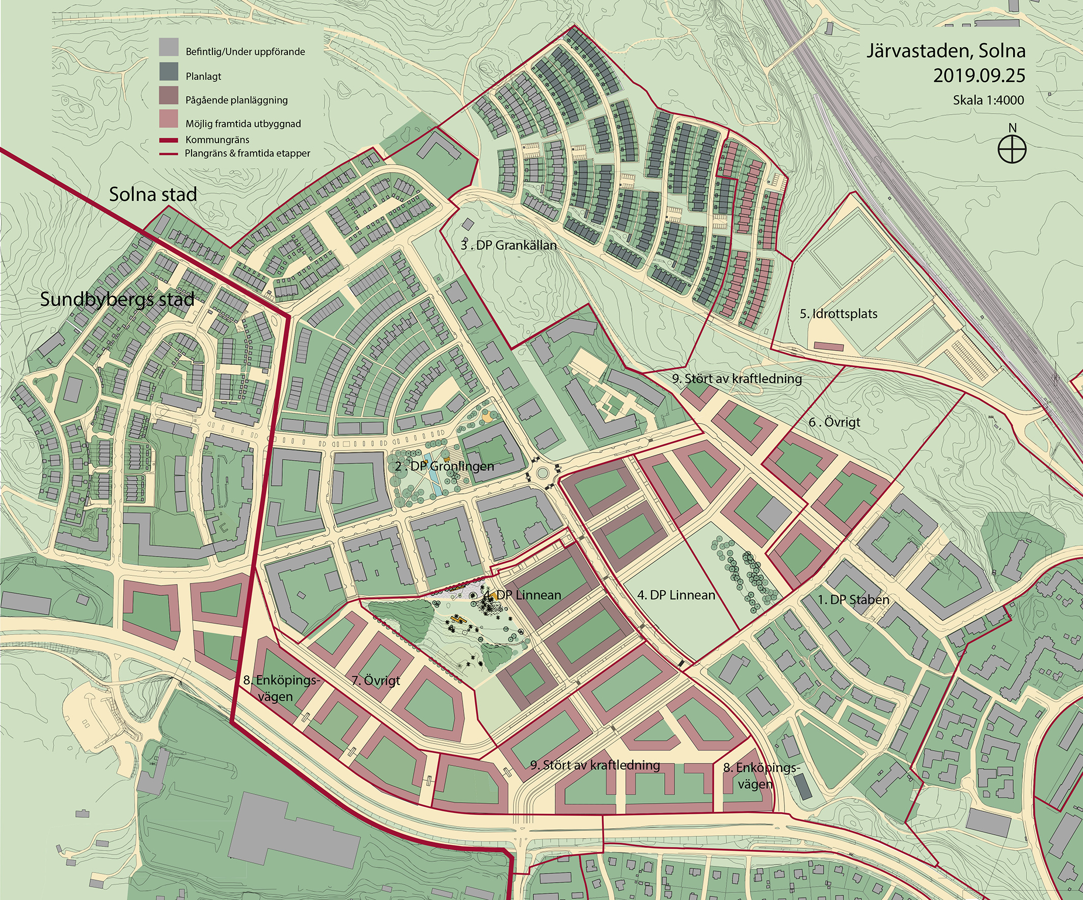 Detaljplanen för den fjärde etappen godkändes av byggnadsnämnden den 16 oktober 2019 och väntas antas av kommunfullmäktige senare i år. Med etapp 4 tillkommer cirka 850 nya lägenheter, med lokaler i gatuplan för till exempel restauranger, butiker och service samt en större förskola. Etapp 5, som är nästa steg i utvecklingen av området, utgörs av idrottsplatsen. De återstående etapperna 6 till 9 som beskrivs i principöverenskommelsen omfattar cirka 3 000 nya lägenheter.