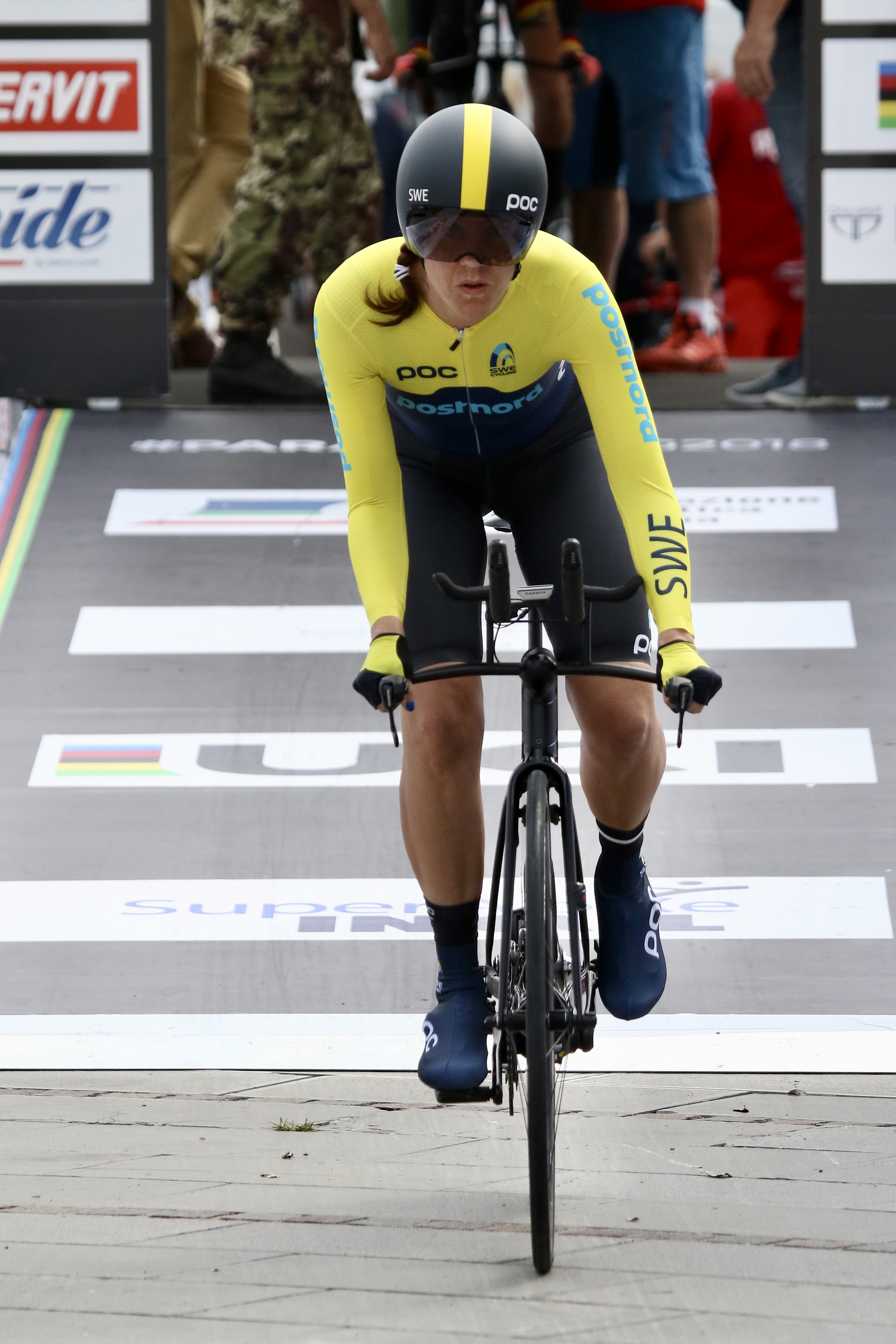 Damernas tempolopp kördes på en 13,6 kilometer lång bana som visade sig passa Anna bra. Hon gjorde ett stabilt lopp och körde såpass fort att hon med en kilometer kvar till mål hade kört ifatt de två cyklisterna som startade framför henne.