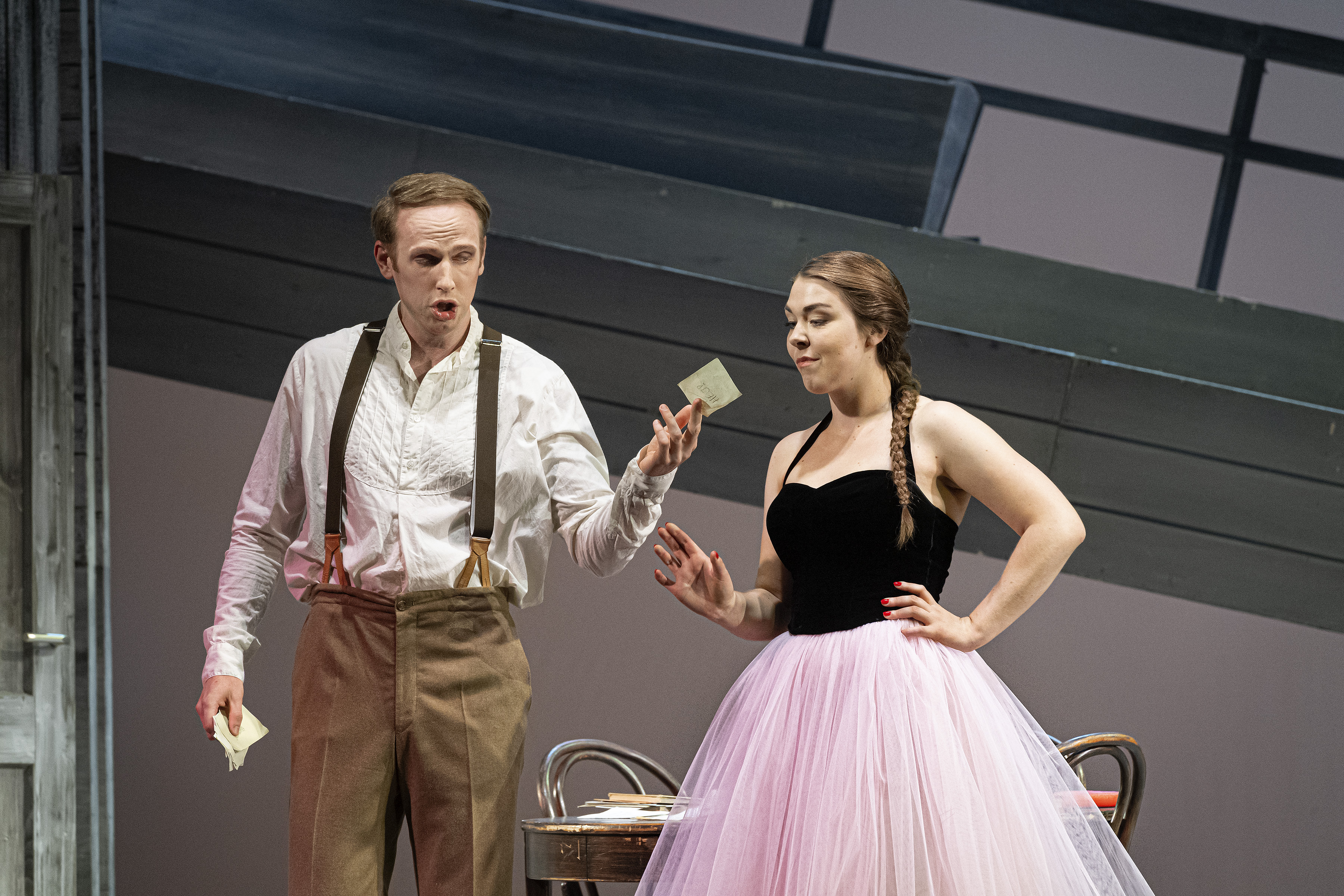 I rollerna i stort sett samma sångare som vid premiären, våren 2018. Nya i sammanhanget är två unga sångare, mezzosopranen Karin Osbeck som Olga och barytonen Mikael Horned som Zaretskij.