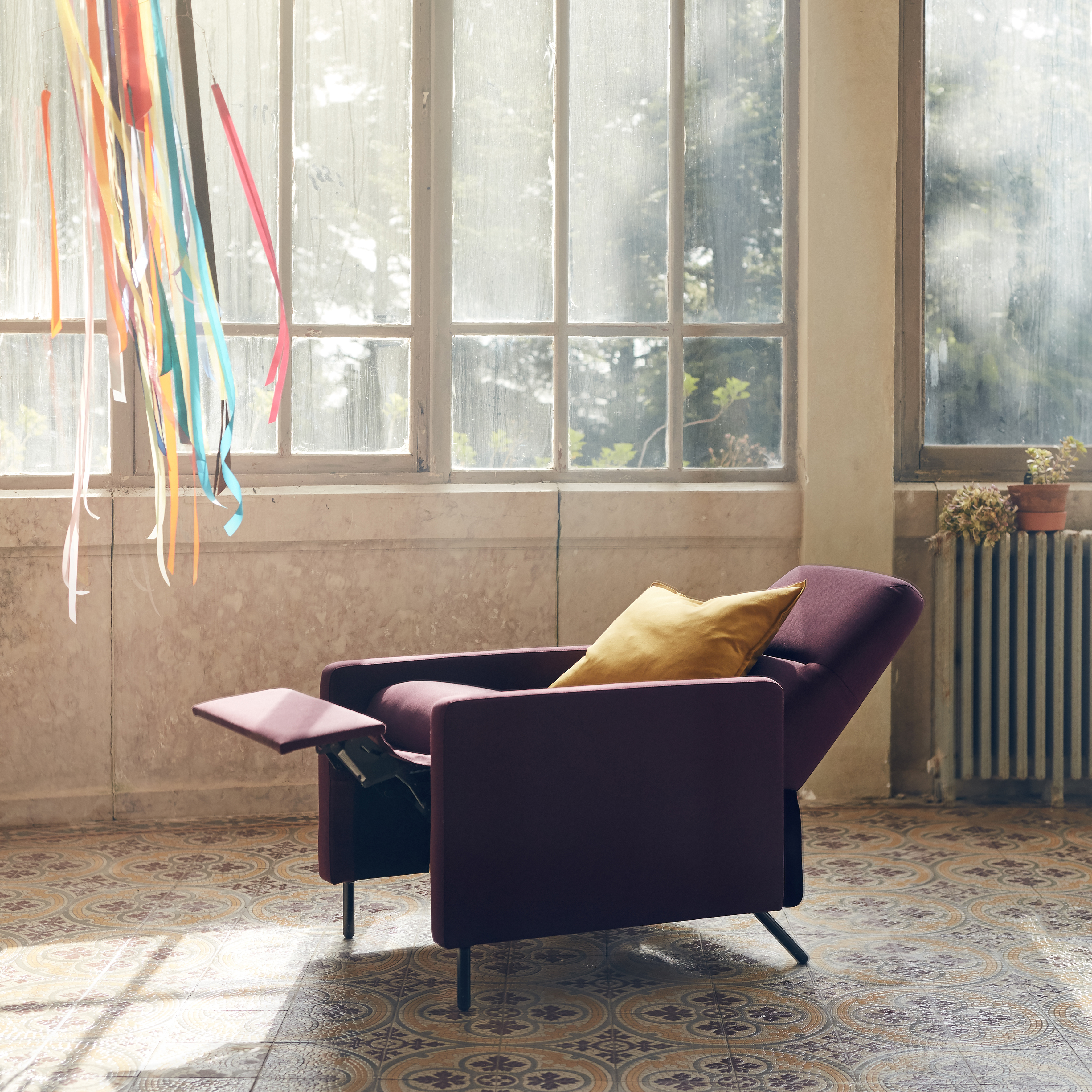 En bekväm och stilsäker nyhet för vardagsrummet är vilfåtöljen GISTAD i en mustigt mörkröd ton – enkel att anpassa till olika aktiviteter hemma med sina tre lägen – upprätt, lätt bakåtlutad eller liggande.