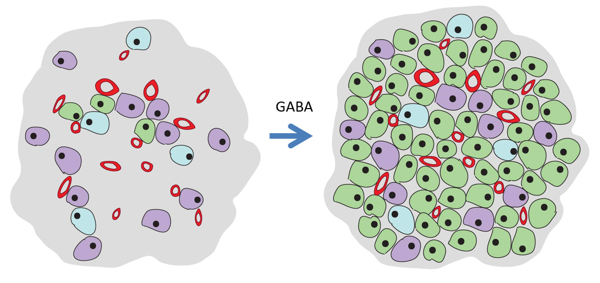 Tidigare studier i laboratorium på insulinproducerande celler från gnagare och människa har visat att det går att kicka igång nyproduktion av insulinproducerande så kallade beta-celler i bukspottkörteln med gammaaminosmörsyra, GABA. Det är ett ämne som utgör en av de viktigaste signalsubstanserna i hjärnan och även finns i bukspottkörteln.