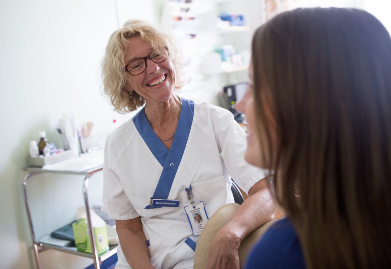 Bildtext: Tanja Tydén, professor i vårdvetenskap och barnmorska på familjeplaneringsmottagningen, Akademiska sjukhuset. Här tillsammans med Jenny Stern, medicine doktor i vårdvetenskap