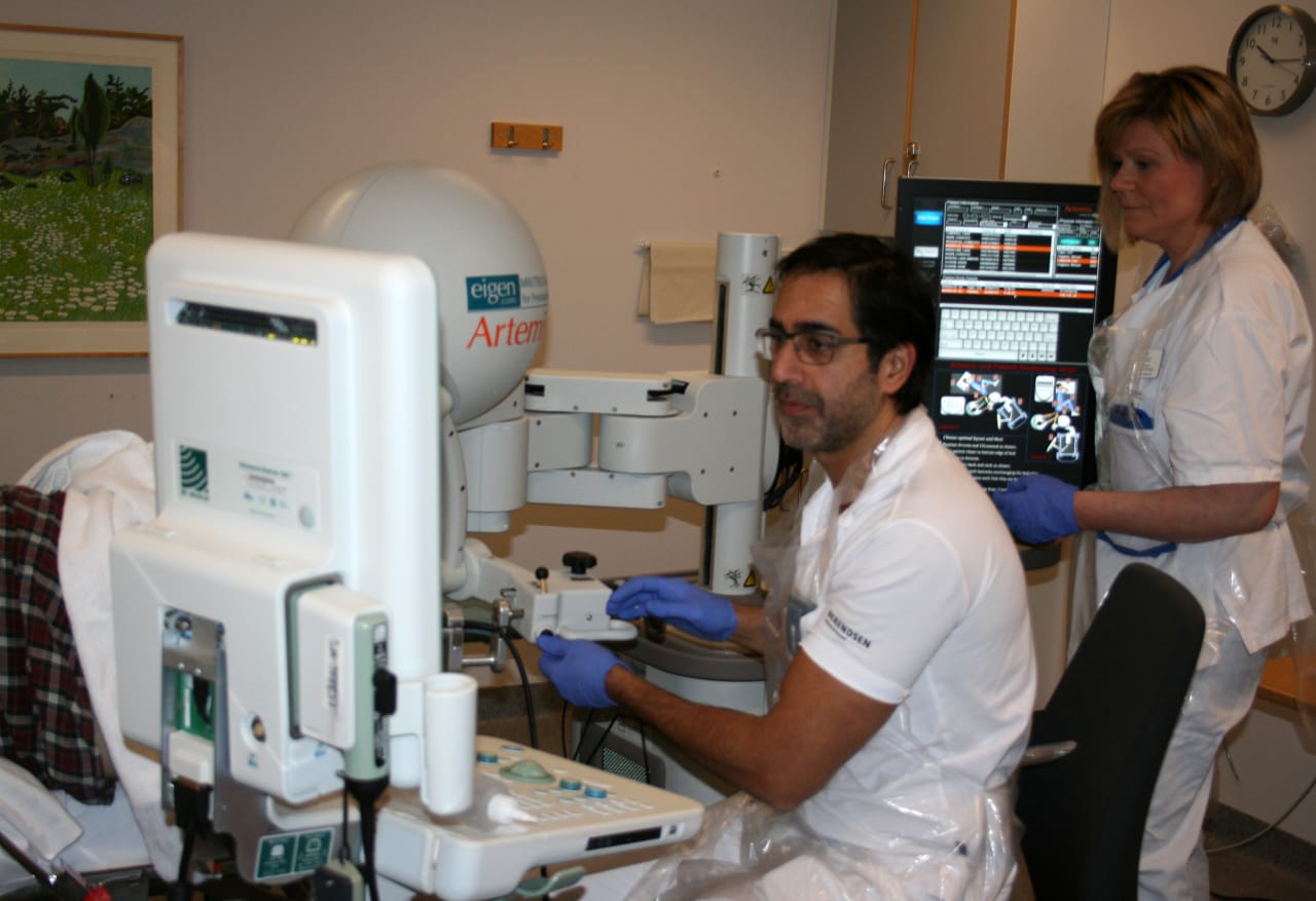 – Den nya, kombinerade tekniken är mer träffsäker och gör att vi kan hitta potentiellt allvarlig prostatacancer som behöver behandlas. Åtta av tio män som undersökts har visat sig ha aggressiva tumörer som måste åtgärdas. Samtidigt slipper män med harmlös lågriskcancer genomgå lika många biopsier som tidigare vilket minskar infektionsrisken och innebär att färre behandlas i onödan, säger Sam Ladjevardi, överläkare på Akademiska sjukhusets urologklinik, som introducerat den nya tekniken i samarbete med kollegan Michael Häggman och röntgenenheten.