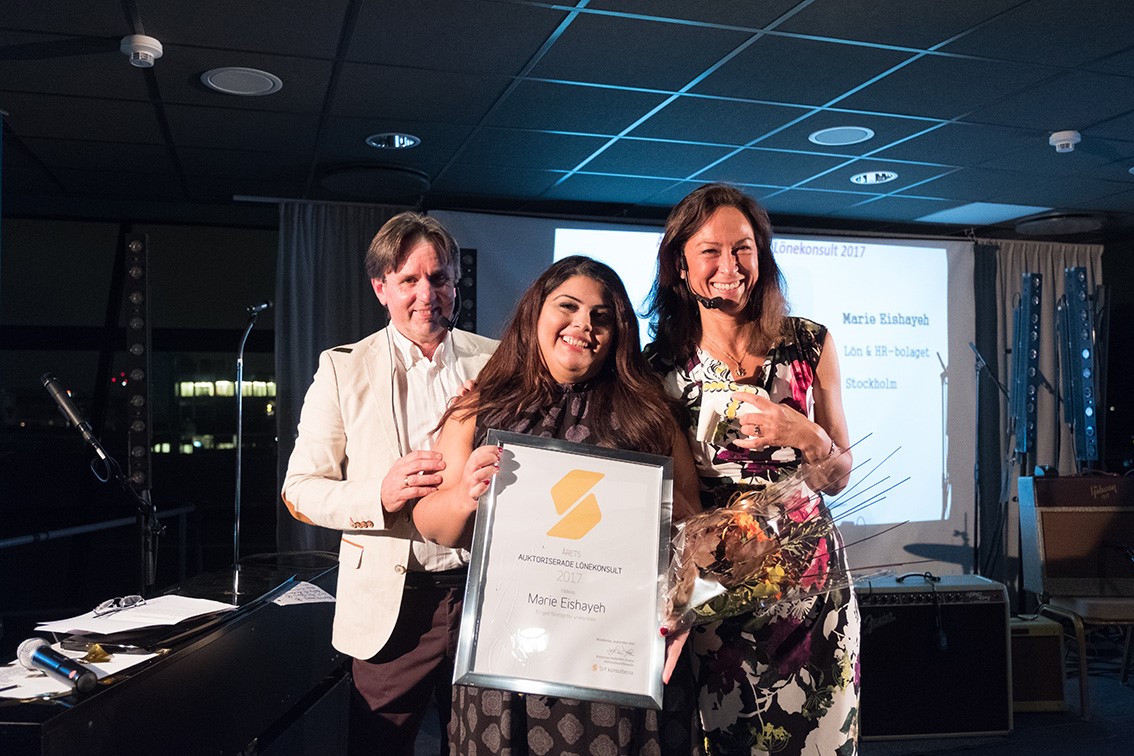 – Det här är verkligen kul, det värmde att få höra alla vackra ord. Det har gått fort, från en yrkesroll som varit lite i skymundan till auktorisation. Och nu står jag här, säger Årets Auktoriserade Lönekonsult, Marie Eishayeh.