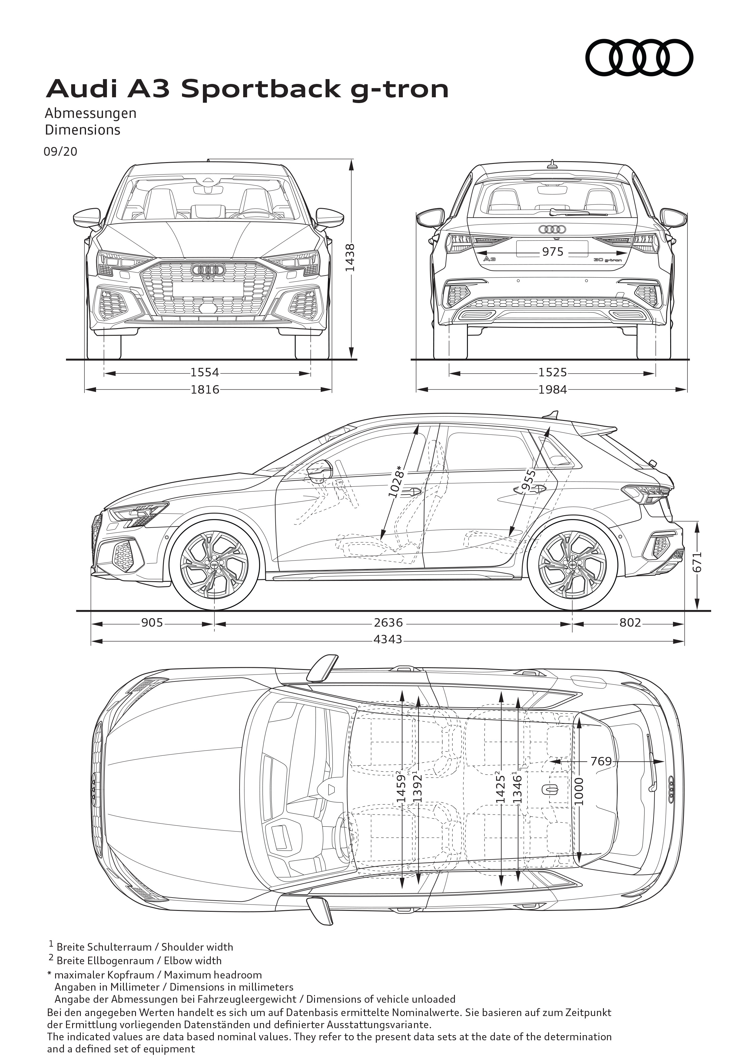 Säljstarten av Audi A3 Sportback g-tron sker under september med ca pris från 331700 kr. Beräknad förmånsvärde vid 50% marginalskatt är 1278 kr/mån.
