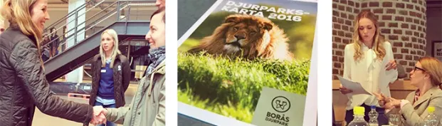 Projektgruppen jobbade med Borås och valde att konceptutveckla Borås Djurpark. Resultatet blev så intressant att gruppen fick presentera det på plats i Borås. Med på mötet fanns representanter från Borås kommun, Destinationsbolaget och Borås Djurpark. Efter en inspirerande presentation följde diskussioner kring hur gruppen resonerat med projektets upplägg, vilka idéer som kunde tas till vara och hur Borås Djurpark arbetar för att möta nya krav från kunder med en ny grafisk profil och sitt varumärke.