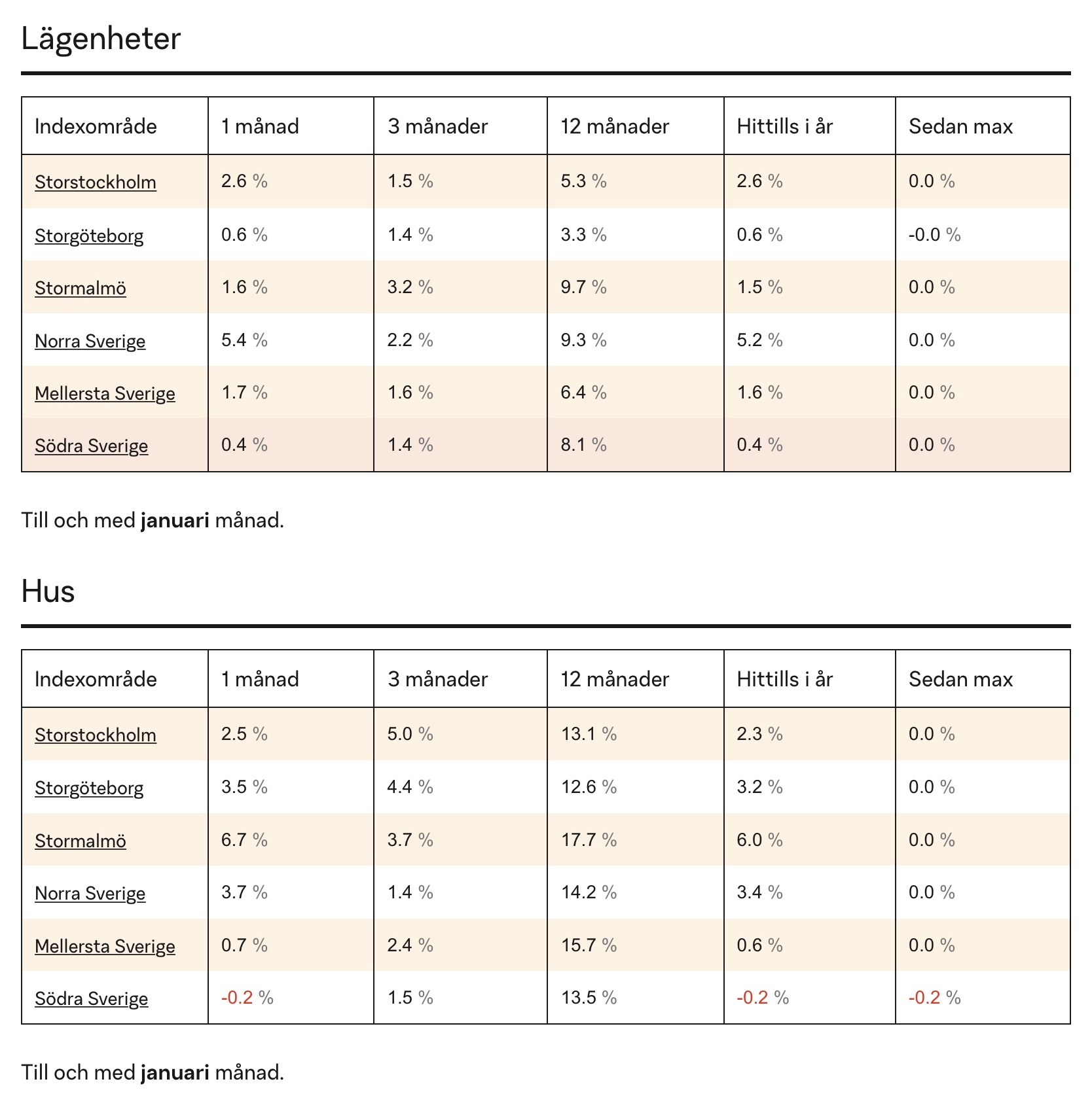Bostadspriserna steg i januari - corona fortsätter att sätta positiva avtryck