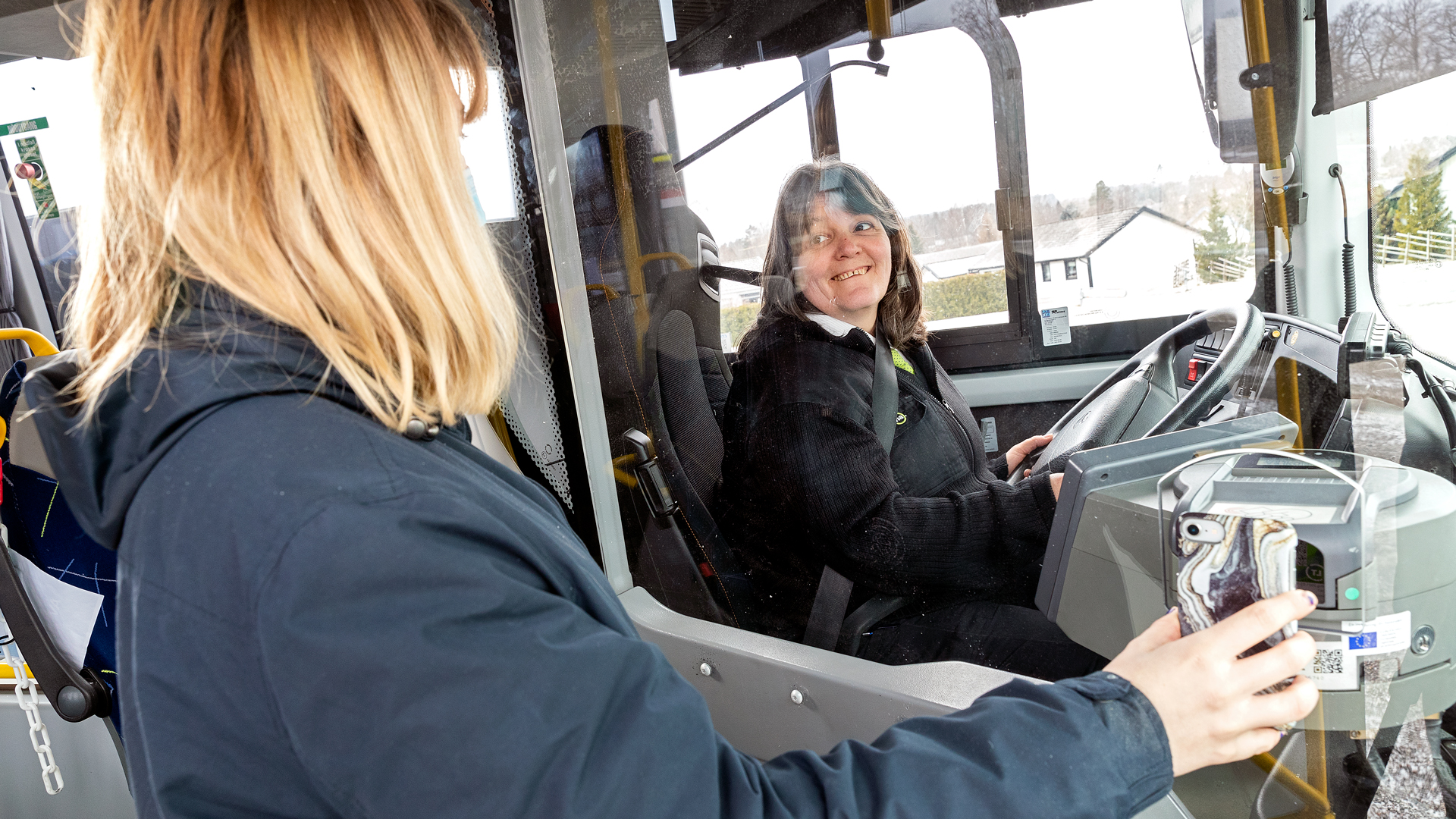 - Det är möjligt att scanna mobilbiljetten i biljettmaskinen framme vid föraren.