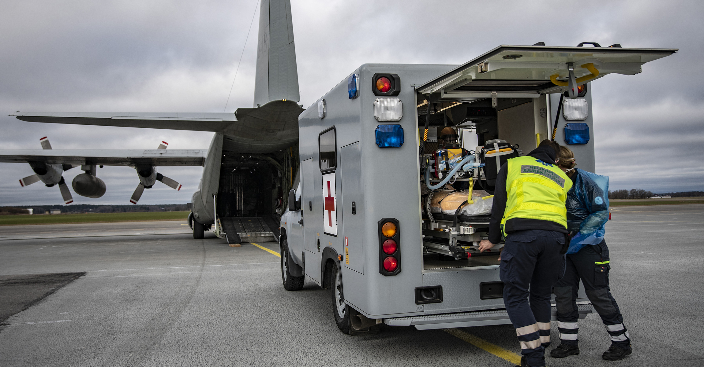 Vid den första patienttransporten i Herculesplanet 1 april medverkade ett extrainsatt team från Luftburen Intensivvård på Akademiska. Innan patienttransporten genomfördes övade vårdpersonalen tillsammans med personal från Försvarsmakten och ett team från helikopterverksamheten i Västra Götaland för att kunna utföra intensivvårdstransporter i transportflygplan Hercules.