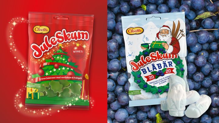 Juleskum Blåbär är fluffiga skumtomtar med en fyllig och härlig smak av blåbär. Juleskum Granar innehåller mjuka julgranar som består av en kombination av ljuvligt vaniljskum och härlig fruktgelé. Precis som Juleskum Original är båda produkterna fria från palmolja, innehåller inga artificiella färgämnen och tillverkas i Cloettas fabrik i Ljungsbro utanför Linköping.