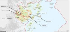 Kartan är uppdelad i flera geografiska områden där följande aktörer har blivit tilldelade respektive område: