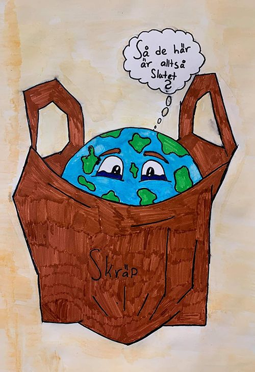 Motivering: Juryn uppskattar arbetet bakom denna kreativa affisch. Materialvalet skapar ett häftigt djup och det finns mycket detaljer att läsa in. Vem vill skräpa ner efter att ha sett detta mästerverk? Bra prestation!